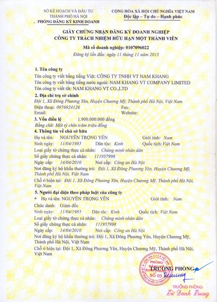 - Tên Tiếng Anh: NAM KHANG VT COMPANY LIMITED.