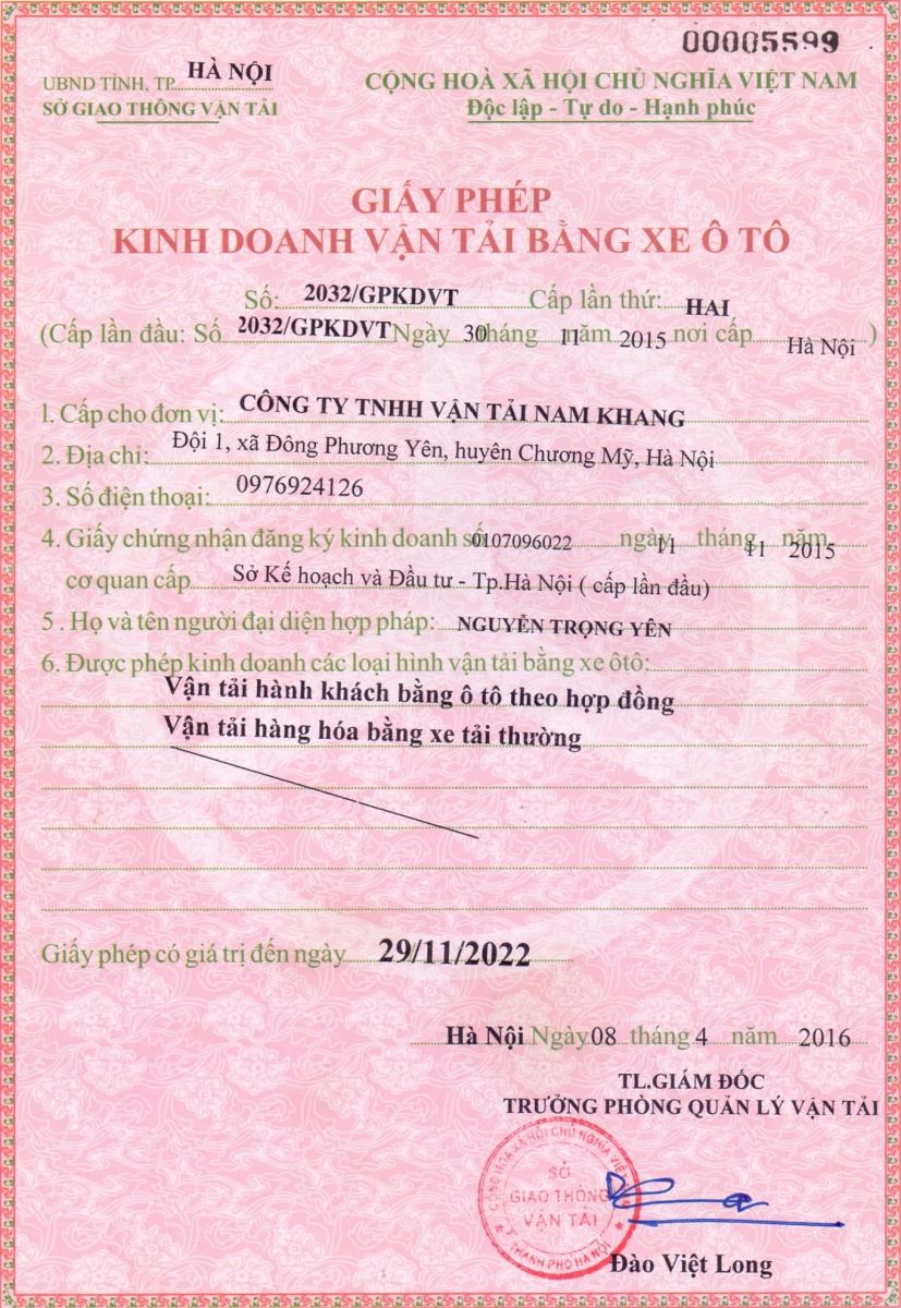 - Tên doanh nghiệp: CÔNG TY TNHH VT NAM KHANG.
